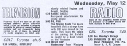 The Globe had a "HIGHLIGHTS ON 6" box-out for the new series. This paper carried listings for CBLT Toronto (CH 6) and CKVR Barrie (Ch 3), although from 28 June, when the series shifted to its new weekday slot, it was no longer listed under CKVR.